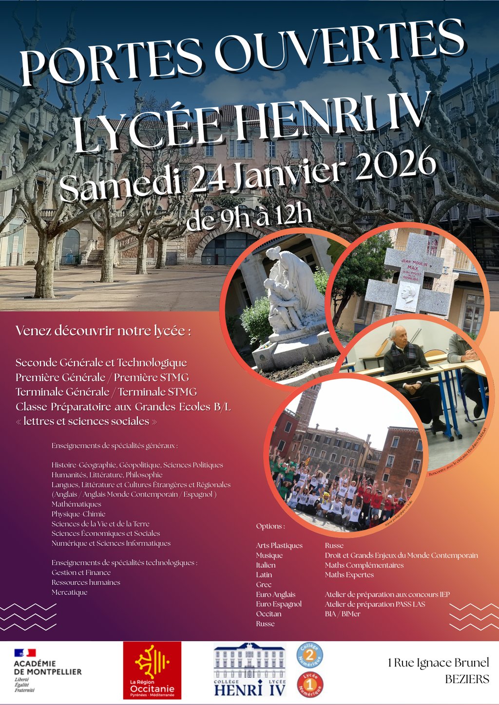 📢 PORTES OUVERTES AU LYCÉE HENRI IV - BÉZIERS.