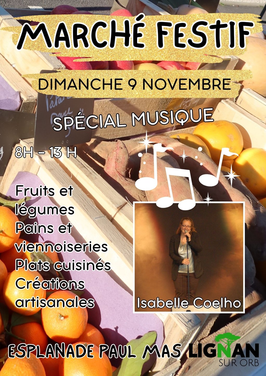 Ce dimanche 9 novembre, votre marché hebdomadaire prend une ambiance festive exceptionnelle sur l'Esplanade Paul Mas à Lignan-sur-Orb !